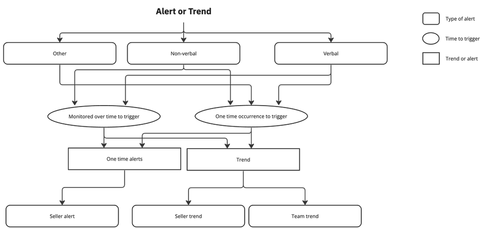 We categorized alerts into three main types - Seller Alert, Seller Trend, and Team Trend - to provide sales managers a comprehensive view of potential issues, whether triggered by a single occurrence or emerging patterns.