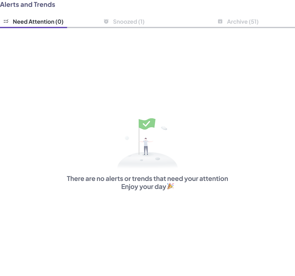 Based on the list of alerts and trends we'd created, we were able to further categorize them into two main groups - positive and negative, which is visualized using a red or green line on the side of the alert/trend card.
